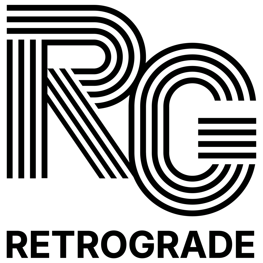 Font: Zastosowanie mocnego, bezszeryfowego kroju pisma w nazwie pełnej (RETROGRADE) stanowi stabilny fundament dla ozdobnego sygnetu. Wysoki kontrast i czytelność budują wizerunek marki godnej zaufania i profesjonalnej.